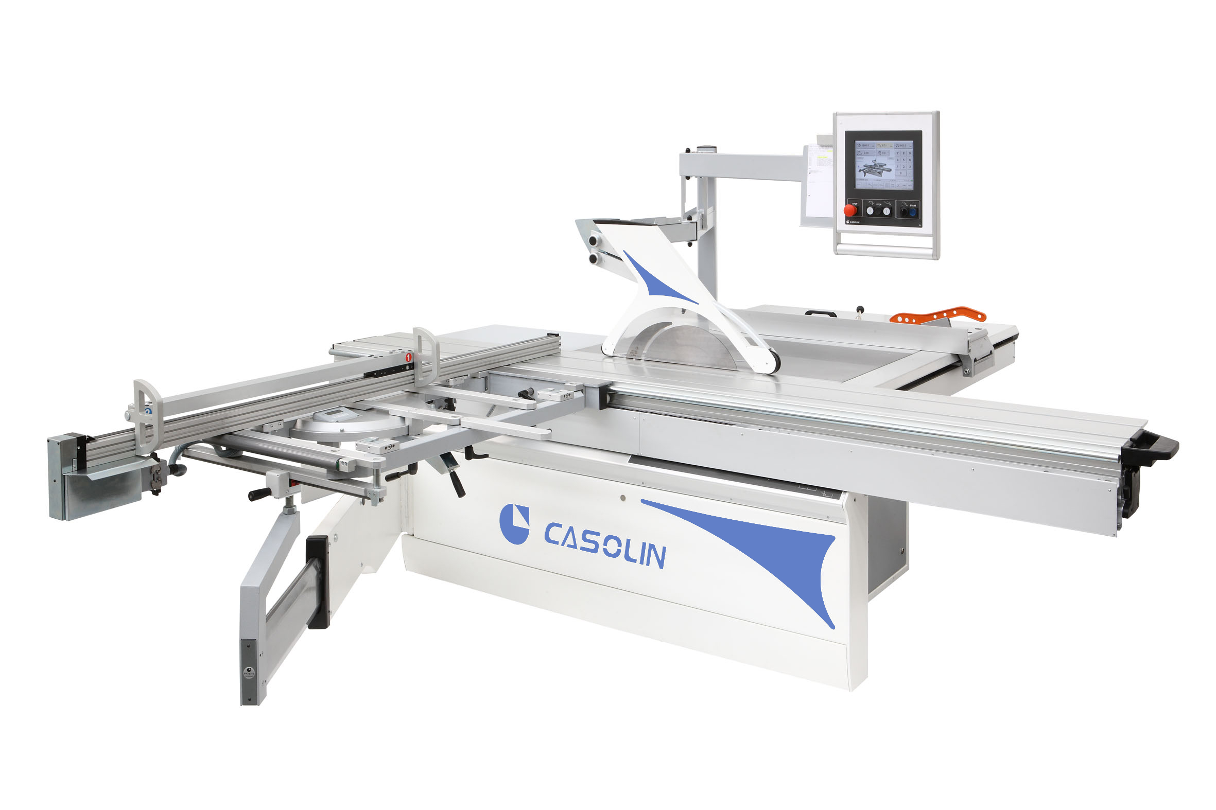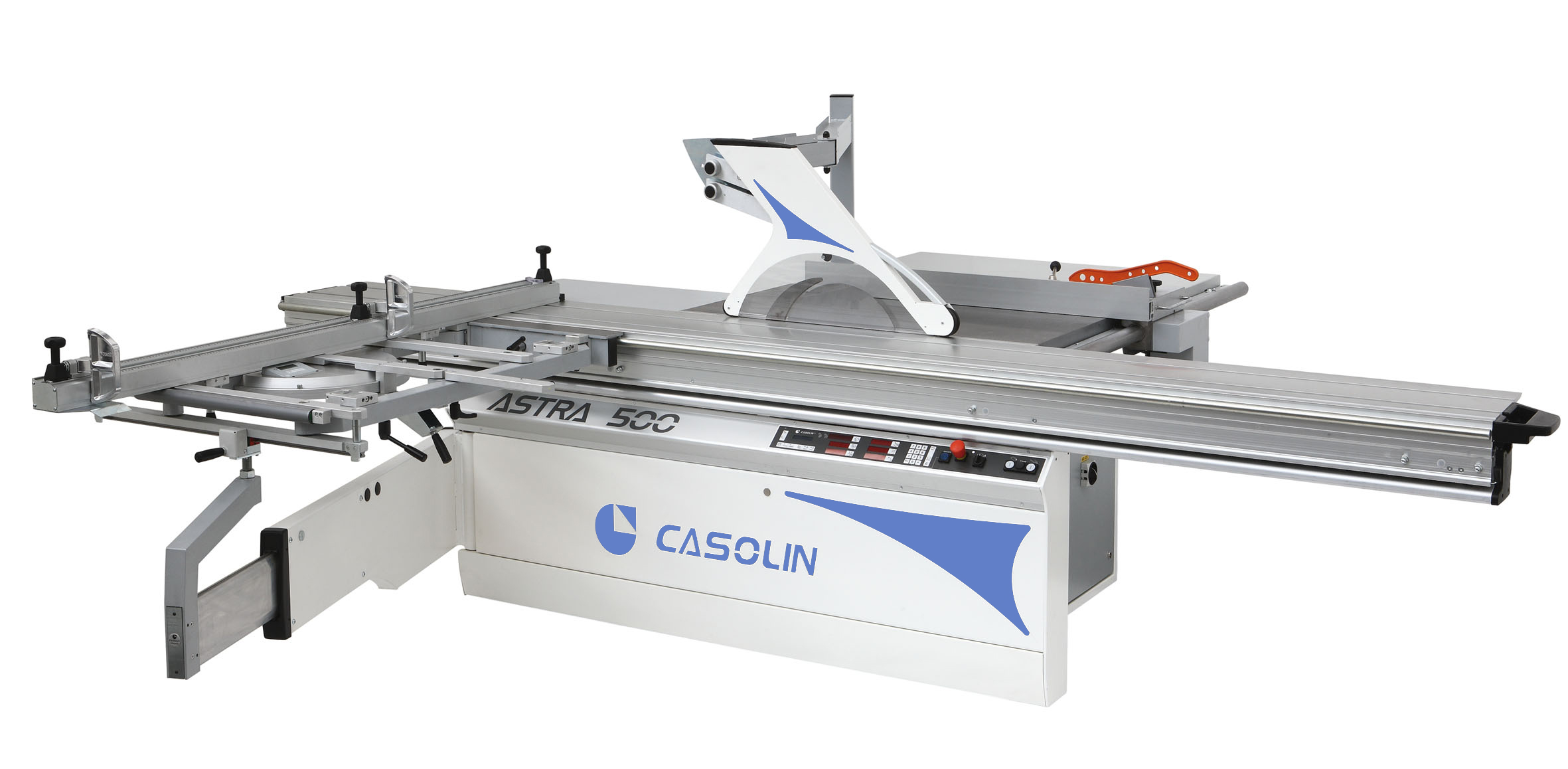 Serra circular modelo Astra 500 para marcenaria. Grupo de lâminas basculantes de 0° a 45,5° inteiramente de ferro fundido e muito profundo para extração ideal de serragem. Correndo sobre guias lineares e corrediças de rolamento de esferas, grande e específico para ambientes empoeirados. Lâmina de rolamento/eixo de alta distância entre eixos para precisão e vibração na serra circular. Ângulo de elevação elétrico e totalmente à prova d’água, permanentemente lubrificado e livre de manutenção. Instalação rápida da lâmina de serra. Correias Poly V superdimensionadas para garantir a transmissão de alta potência no tempo. Giros do visualizador e inclinação digital. Máquina disponível em 4 versões: