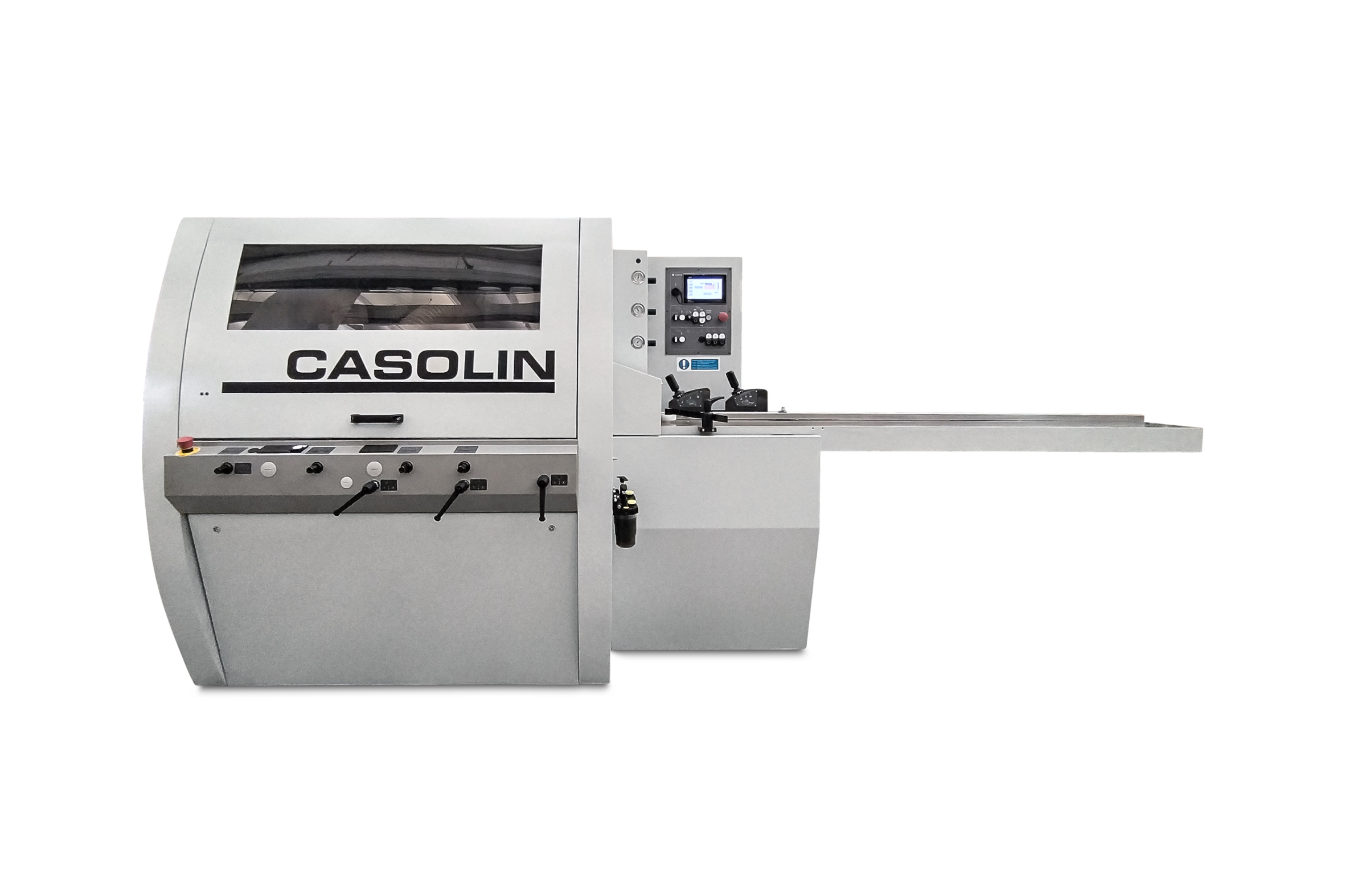 Plaina de quatro lados Mod. Mega 230/4, máquina compacta e forte. Máquina superdimensionada, base feita em aço tratado. Controle da máquina em uma boa posição visual com teclas grandes. Todos os posicionamentos usam leituras decimais. Comprimento da mesa 2500 mm.- Máquina disponível em 3 versões: