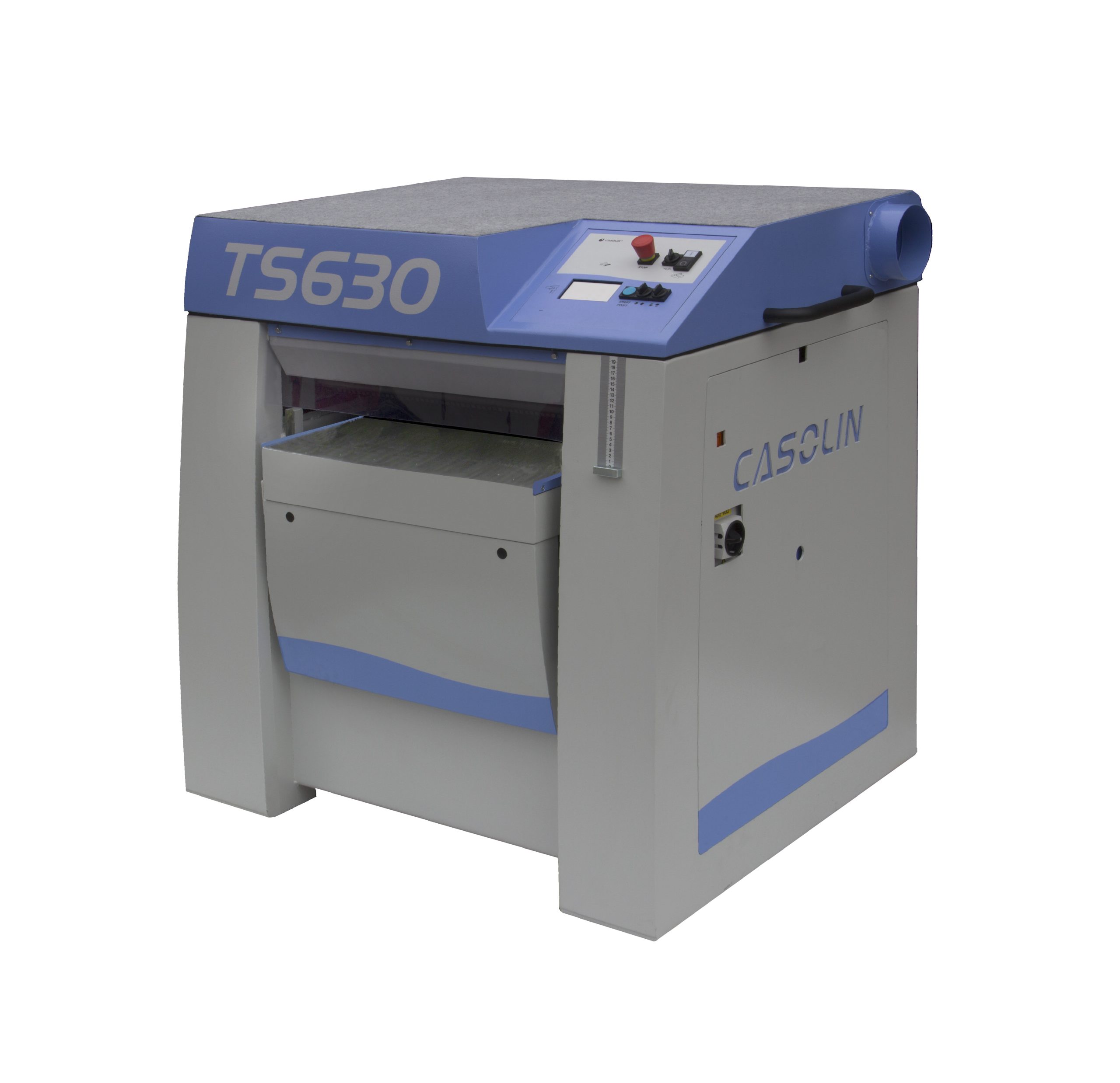 Plaina desengrossadeira modelo   TS 810-630. Máquina moderna, segura e fácil de usar, com tela sensível ao toque fornecida  de série  para gerenciar todas as funções de trabalho. Desempenho de acionamento excepcional das peças de trabalho, graças aos rolos de borracha de grande diâmetro e à suspensão dos rolos com  barras de torção . Alta espessura máxima de extração: 12 mm. Redução automática da  taxa   de avanço da peça de trabalho,  se o motor do eixo da plaina exceder a  potência máxima disponível .  Máquina com tamanho compacto para economizar espaço na carpintaria. Máquina ALL  MADE IN ITÁLIA